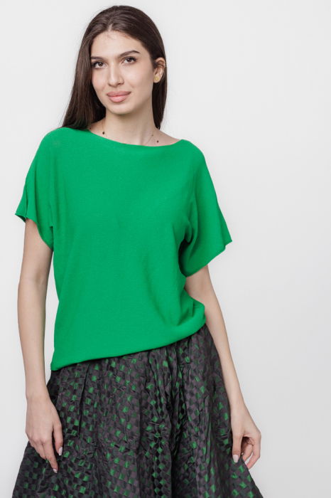 Bluza verde oversize din tencel cu pliseuri pe fata