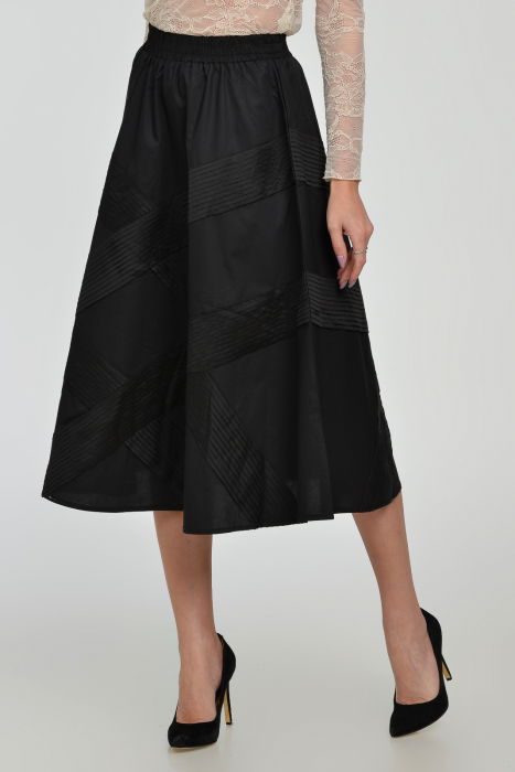 Fusta neagra clos din bumbac satinat cu aplicatii