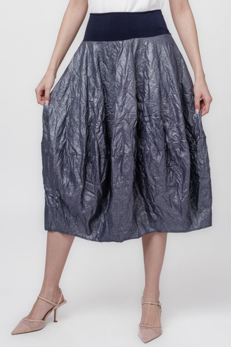 Fusta midi din tafta, tip lalea, argintiu cu bleumarin