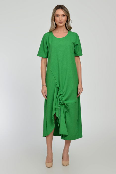 Rochie lunga A-line din in mercerizat cu siret la poale, verde intens