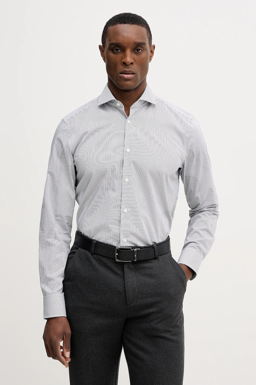 HUGO camasa din bumbac barbati, culoarea alb, cu guler clasic, slim