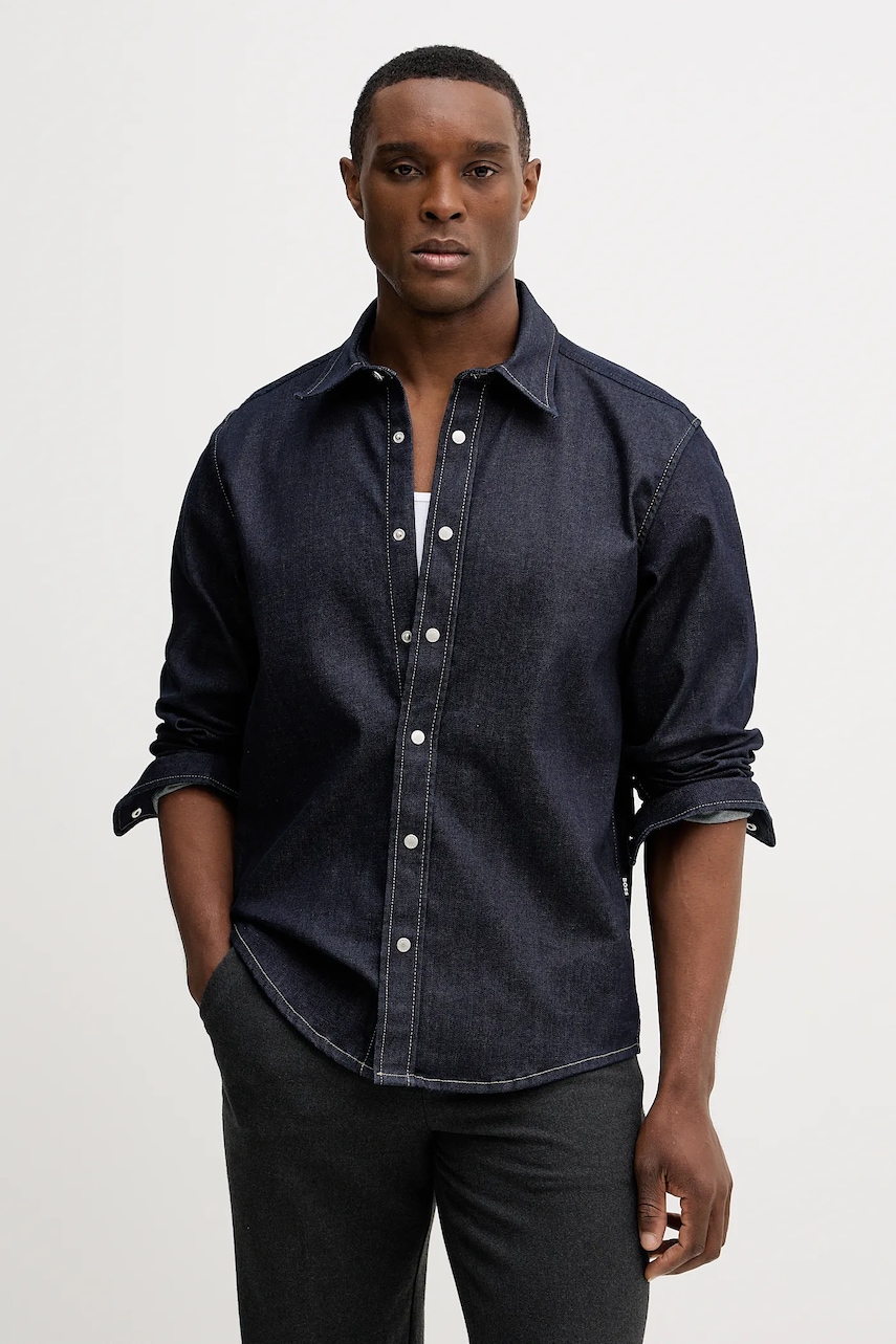 BOSS cămașă jeans H-LIAM culoarea bleumarin, cu guler clasic, regular, 50556188