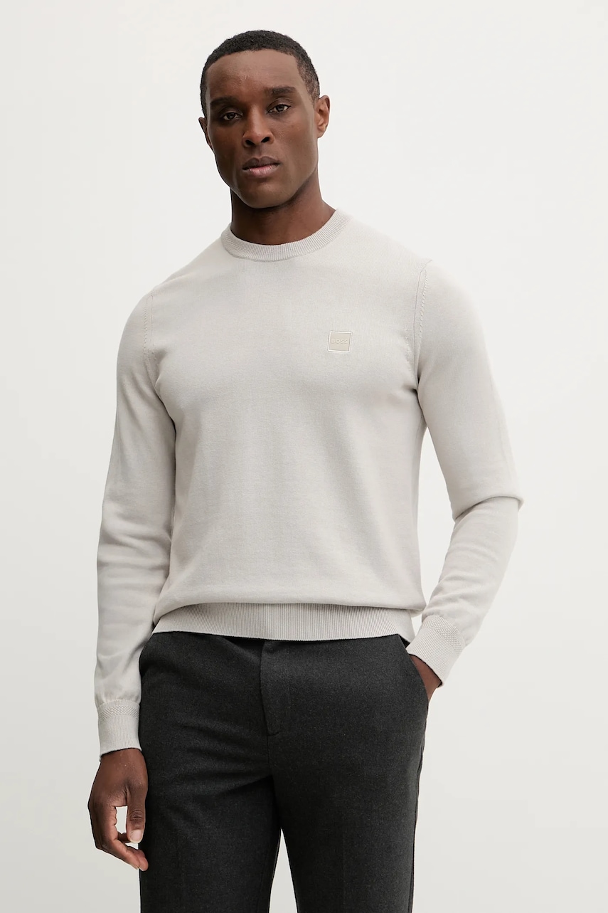 BOSS pulover de lână Musso-P culoarea gri, light, cu guler, 50468262