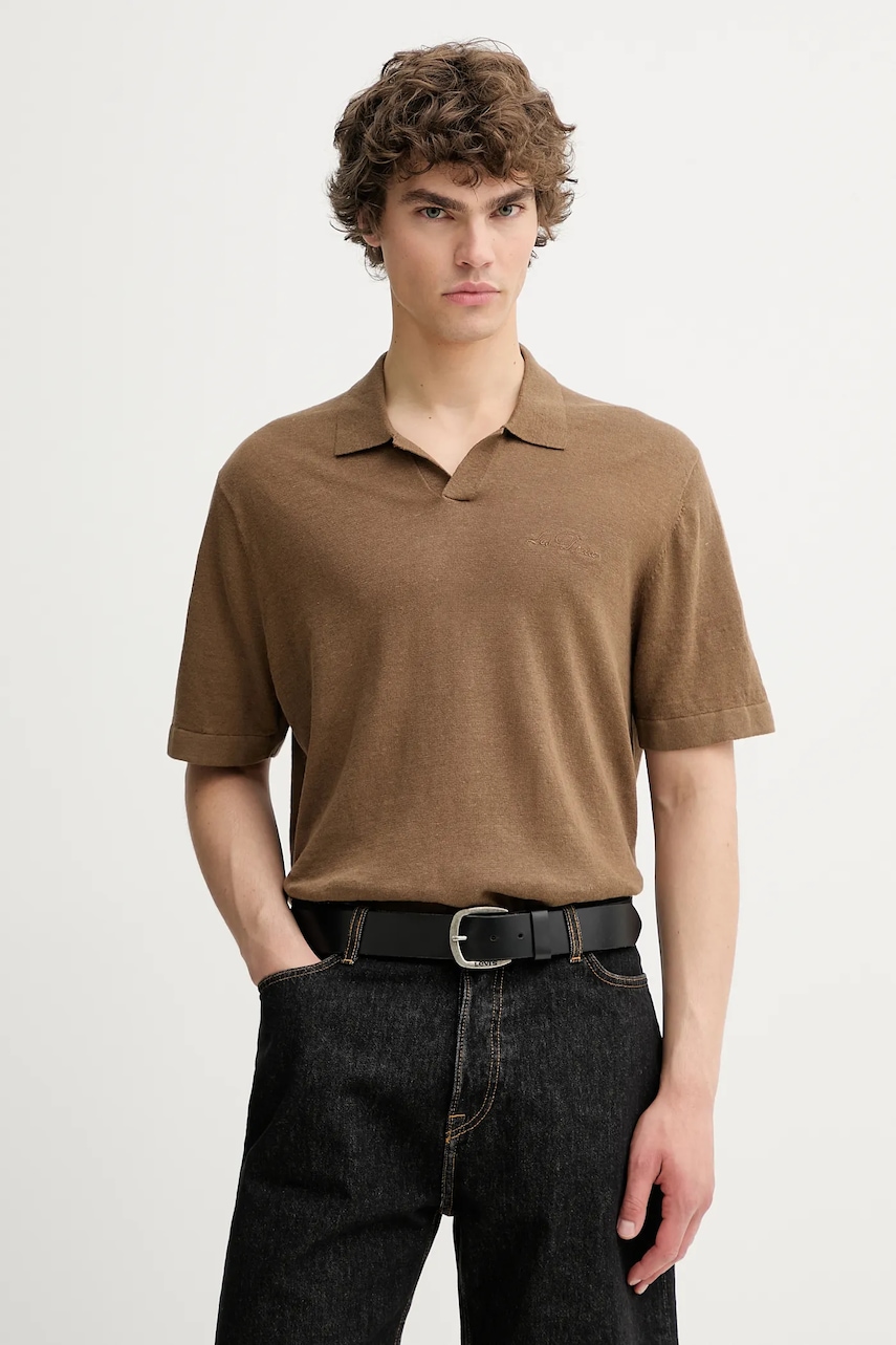HUGO polo de bumbac Deabono_D culoarea maro, uni, 50517638