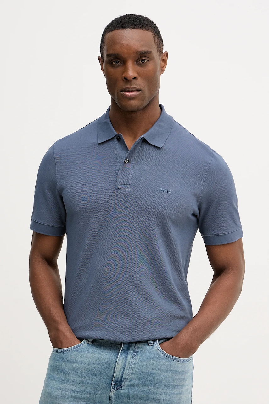 BOSS polo de bumbac H-Phillipson 202 culoarea bleumarin, uni, 50554529