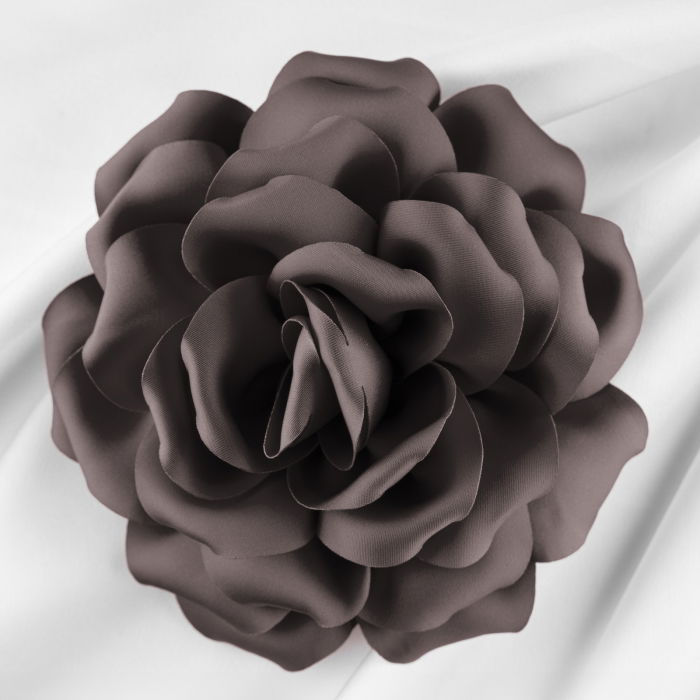 Brosa floare din organza creponata cu diametru de 20 cm, cu clips pentru par, gri deschis
