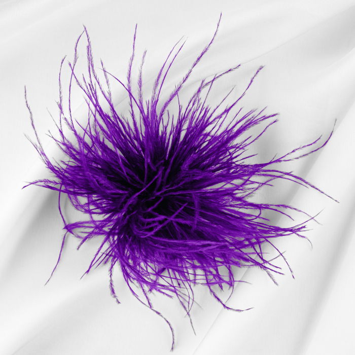 Brosa puf pene fine mov cu diametru de 15 cm, cu clips pentru par