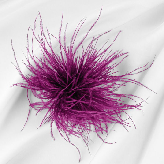 Brosa puf pene fine magenta cu diametru de 15 cm, cu clips pentru par