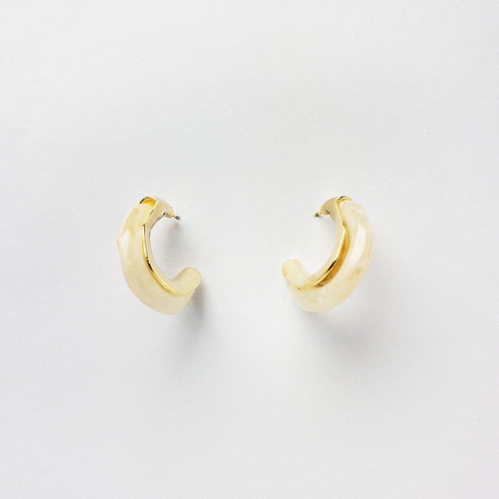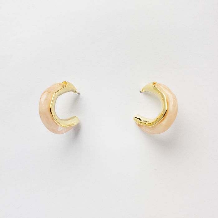 Cercei metalici aurii, semirotund cu insertie bej deschis translucida