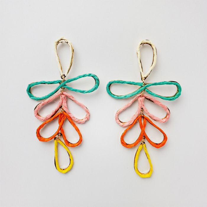 Cercei lungi si flexibili din metal auriu si celuloza, in nuante multicolore