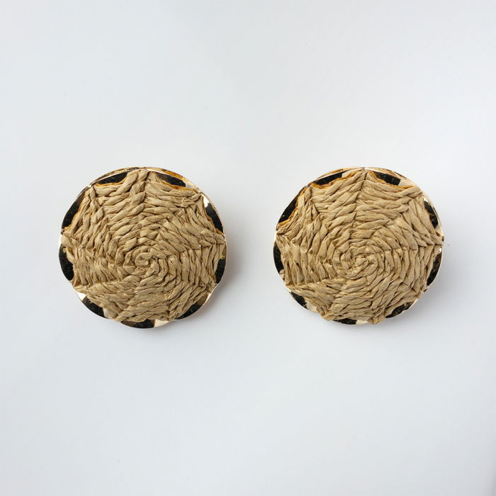 Cercei metalici cu forma rotunda bombata, camel cu auriu