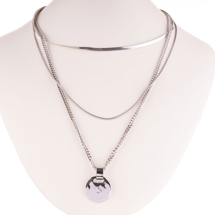 Colier argintiu cu trei lanturi diferite si pandantiv