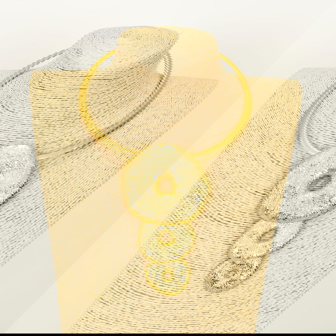 Colier rigid cu 3 cercuri din metal auriu cu aspect de lovitura de ciocan