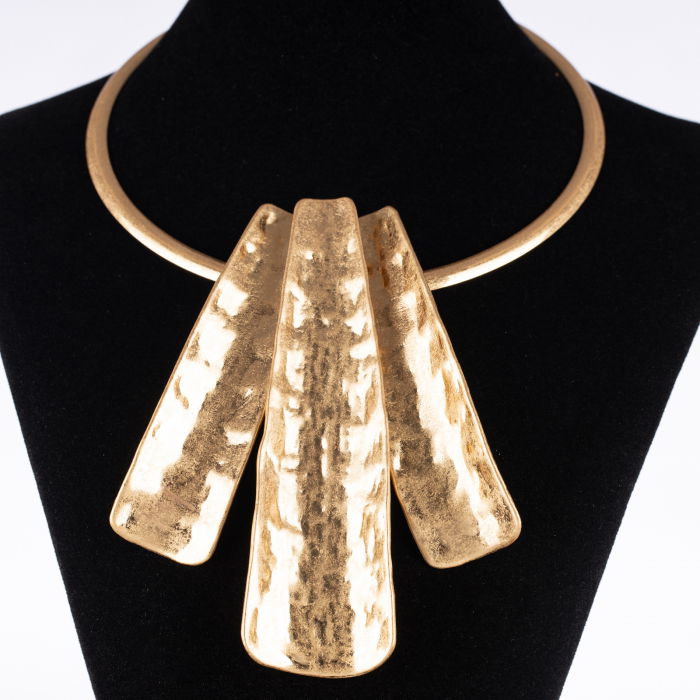 Colier rigid cu 3 dreptunghiuri inegale din metal auriu cu aspect de lovitura de ciocan