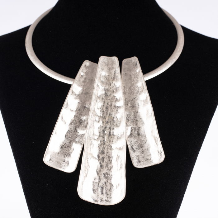 Colier rigid cu 3 dreptunghiuri inegale din metal aurgintiu cu aspect de lovitura de ciocan