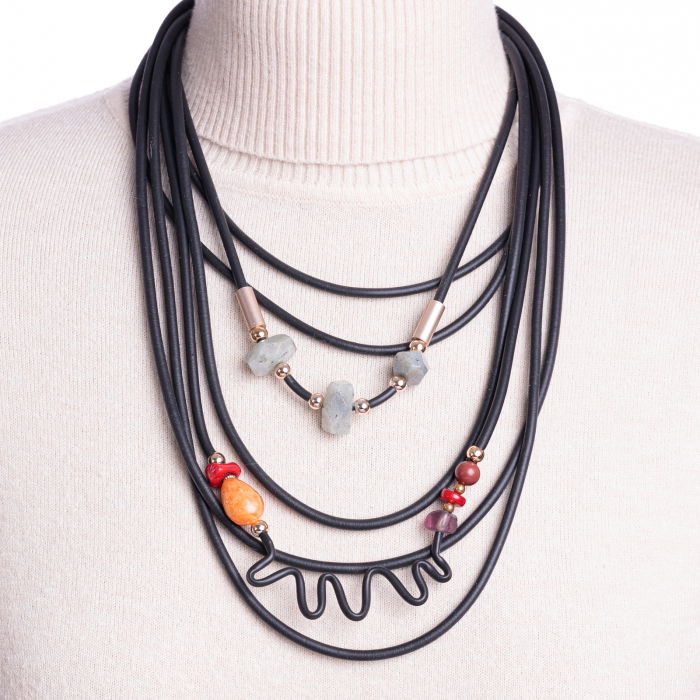 Colier silicon cu 7 siruri si elemente diferite forme de pietre naturale