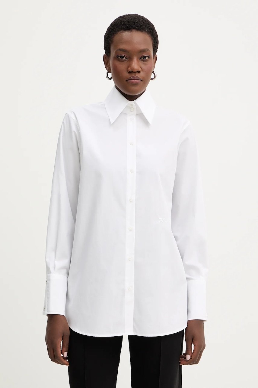 Elisabetta Franchi cămașă din bumbac culoarea alb, cu guler stand-up, relaxed, CA09156E2