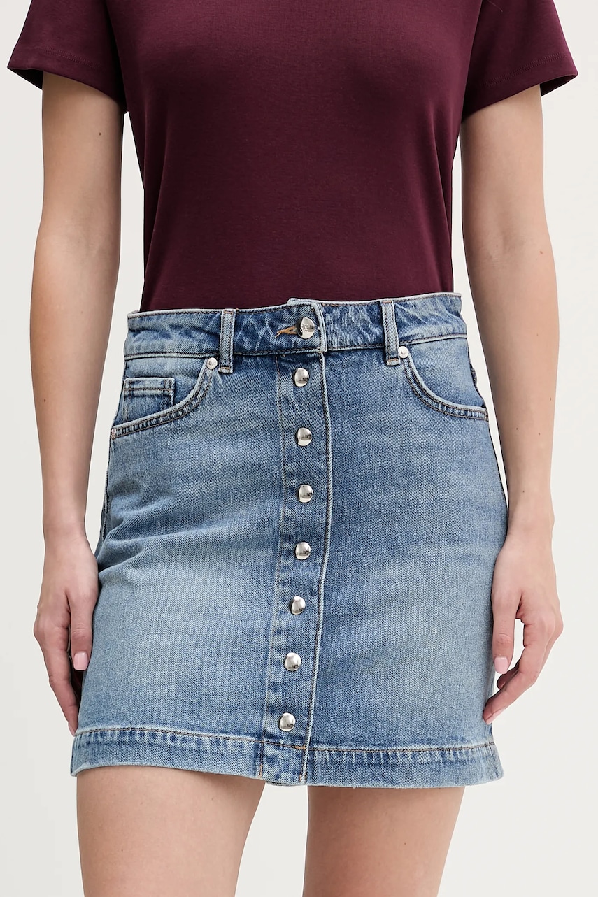 Karl Lagerfeld fustă jeans FASHION DENIM culoarea bleumarin, midi, evazați, B1W12014