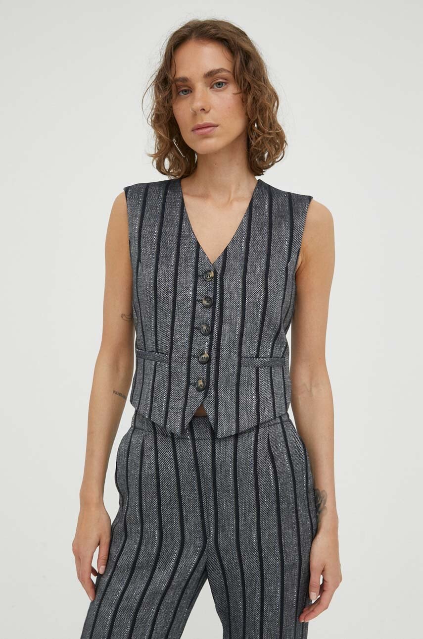 AllSaints vestă ASTRA culoarea gri, un singur rând de nasturi, W043QD