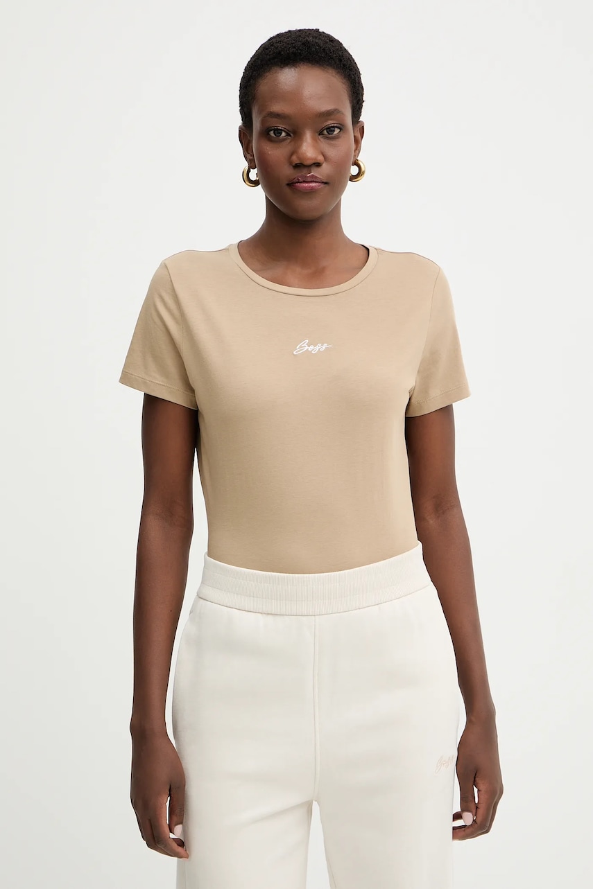 BOSS Orange tricou din bumbac C Elove embro culoarea bej, 50554696