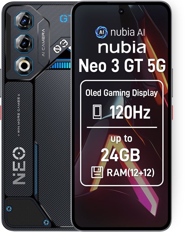 Smartphone ZTE nubia Neo 3 GT, 256GB, 24GB RAM (12GB + 12GB extensibili), Dual SIM, 5G, Tri-Camera, Interstellar Gray