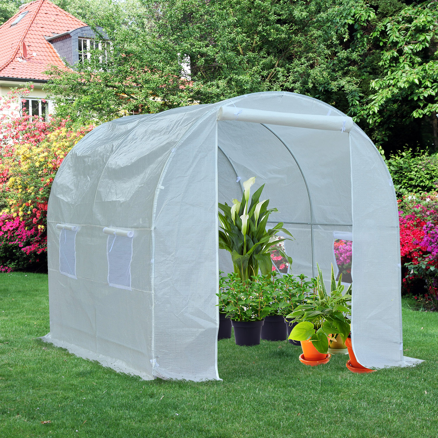 Outsunny Tunel Grădină De Legume Cu Seră Cu 6 Ferestre Și Ușă Rulantă, 4.5x3m, Alb | Aosom Romania