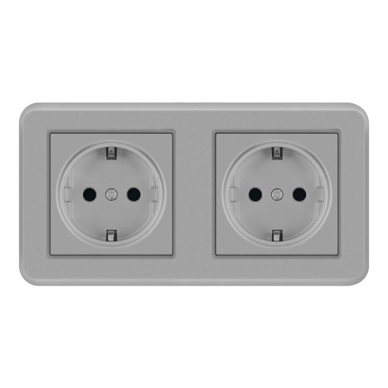 Priza Dubla De Perete Incastrata Techstar® TS-PC, 110-250V, 16A, Ignifuga, 80x151mm, Gri