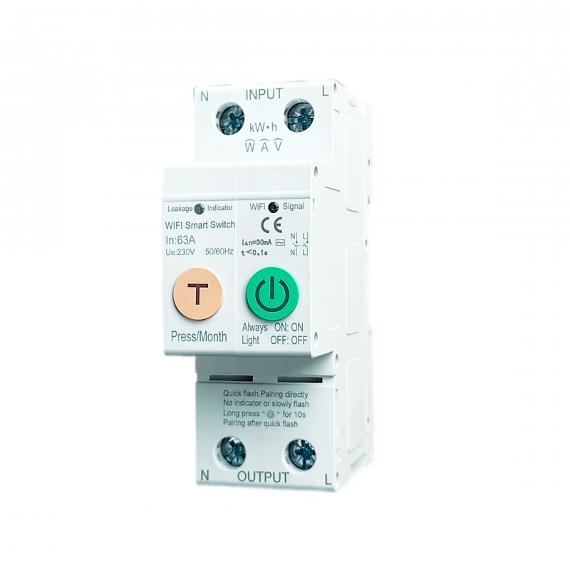 Siguranta Automata Inteligenta Techstar® WiFi, Monitorizare Consum, Tuya/Smartlife, 2P Pol, 1P+N, Monofazat, 63A, Compatibila Google Home si Alexa