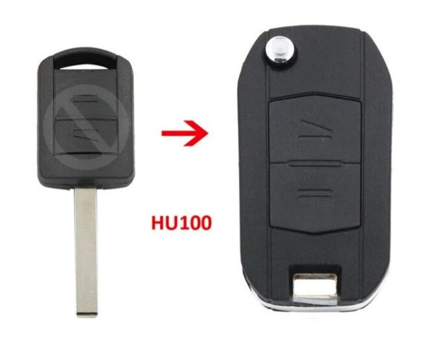 Carcasa cheie auto Techstar transformatoare, upgrade flip, 2 butoane, lama HU100, compatibila Opel Corsa, Astra, Meriva, Zafira