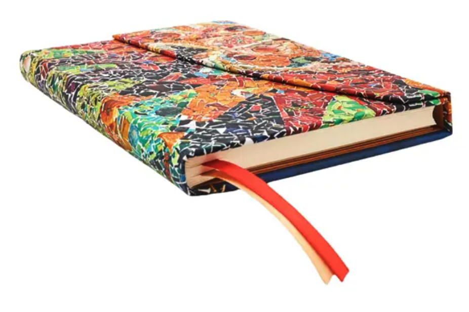 Agenda 2026 - Paperblanks - Gaudis Sun (Gaudi’s Mosaics) - Midi 12-Month Vertical Hardcover FlexiAntoni Gaudi’s use of colourful mosaics and organic forms created exceptional patterns on his sculptures all across Barcelona. We celebrate Gaudi’s vision with a reproduction of a mosaic sun on the ceiling of the Park Guell’s Hypostyle Room, alongside the abstract lines from his chimney pots at the Casa Mila building.