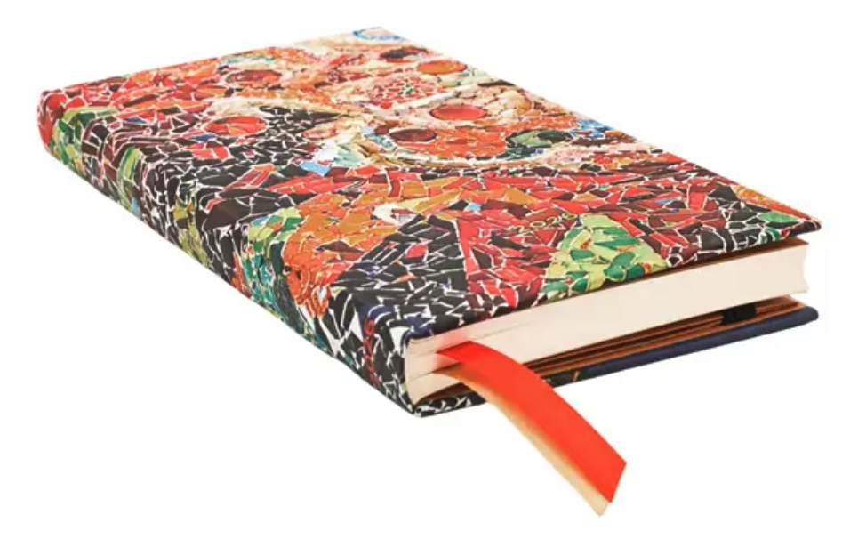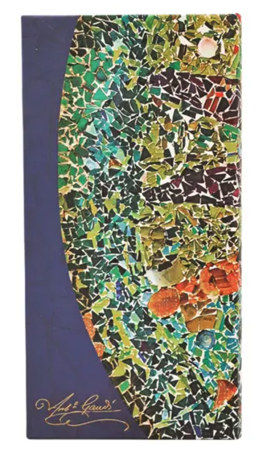 Agenda 2026 - Paperblanks - Gaudis Sun (Gaudi’s Mosaics) - Slim 12-Month Horizontal Hardcover FlexiAntoni Gaudi’s use of colourful mosaics and organic forms created exceptional patterns on his sculptures all across Barcelona. We celebrate Gaudi’s vision with a reproduction of a mosaic sun on the ceiling of the Park Guell’s Hypostyle Room, alongside the abstract lines from his chimney pots at the Casa Mila building.