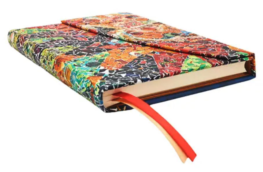 Agende 2026 - Paperblanks - Gaudis Sun (Gaudi’s Mosaics) - Midi 12-Month Horizontal Hardcover FlexiAntoni Gaudi’s use of colourful mosaics and organic forms created exceptional patterns on his sculptures all across Barcelona. We celebrate Gaudi’s vision with a reproduction of a mosaic sun on the ceiling of the Park Guell’s Hypostyle Room, alongside the abstract lines from his chimney pots at the Casa Mila building.