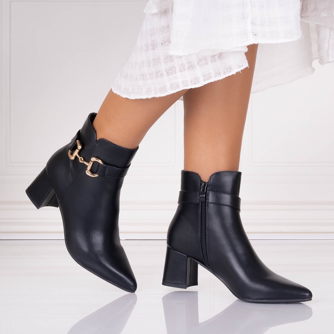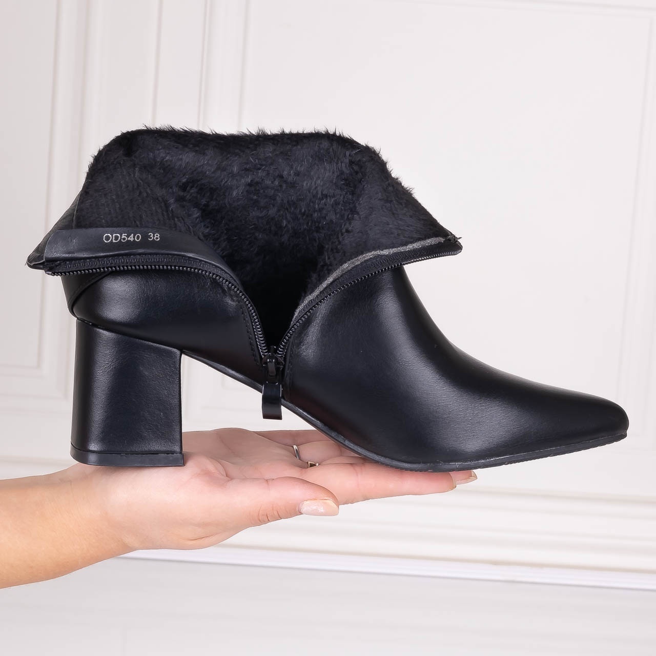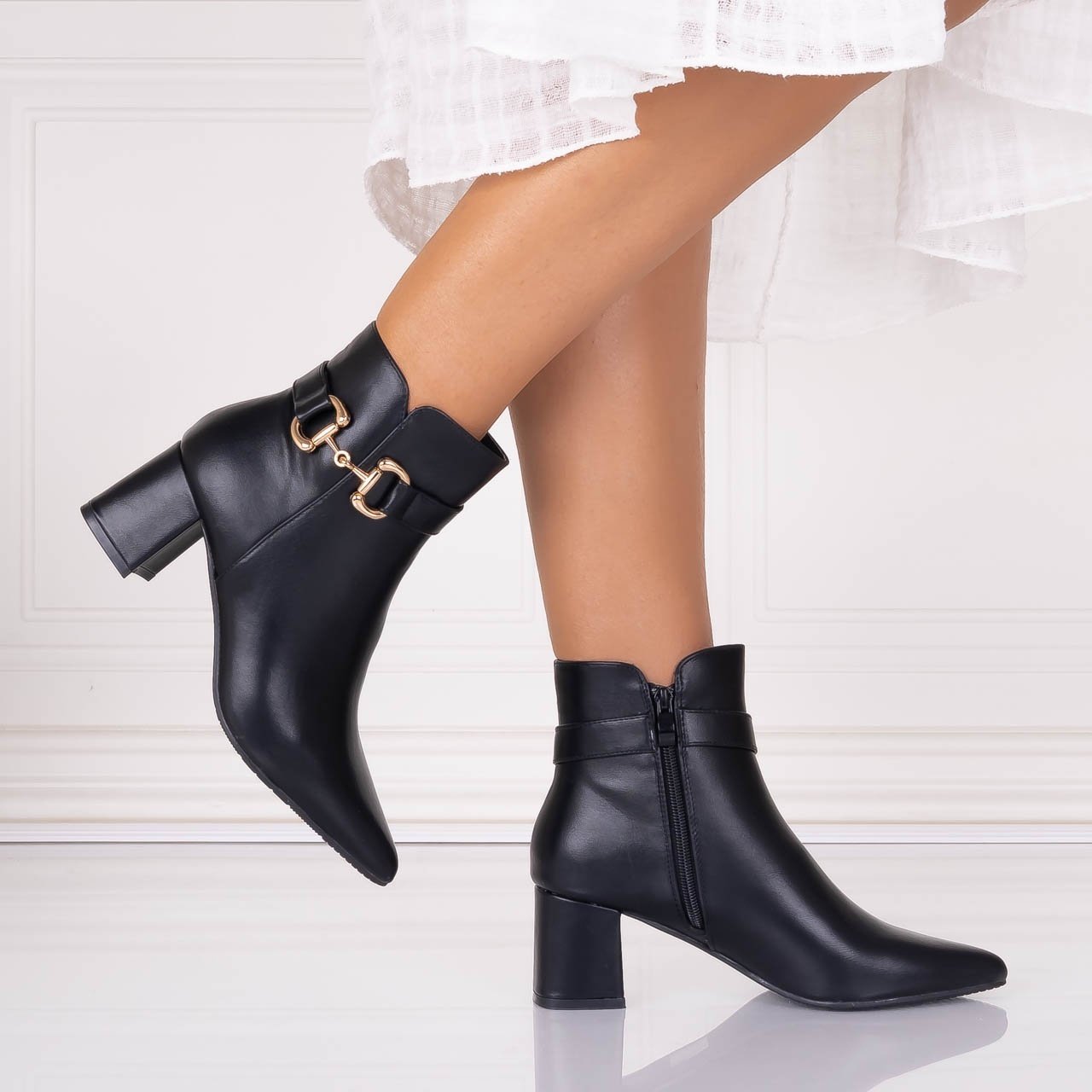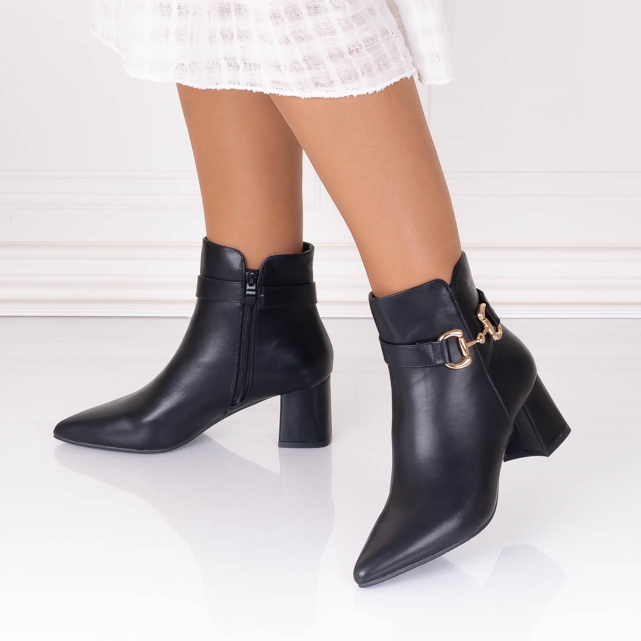 Botine Dama cu toc Negre din Piele Ecologica Aidala