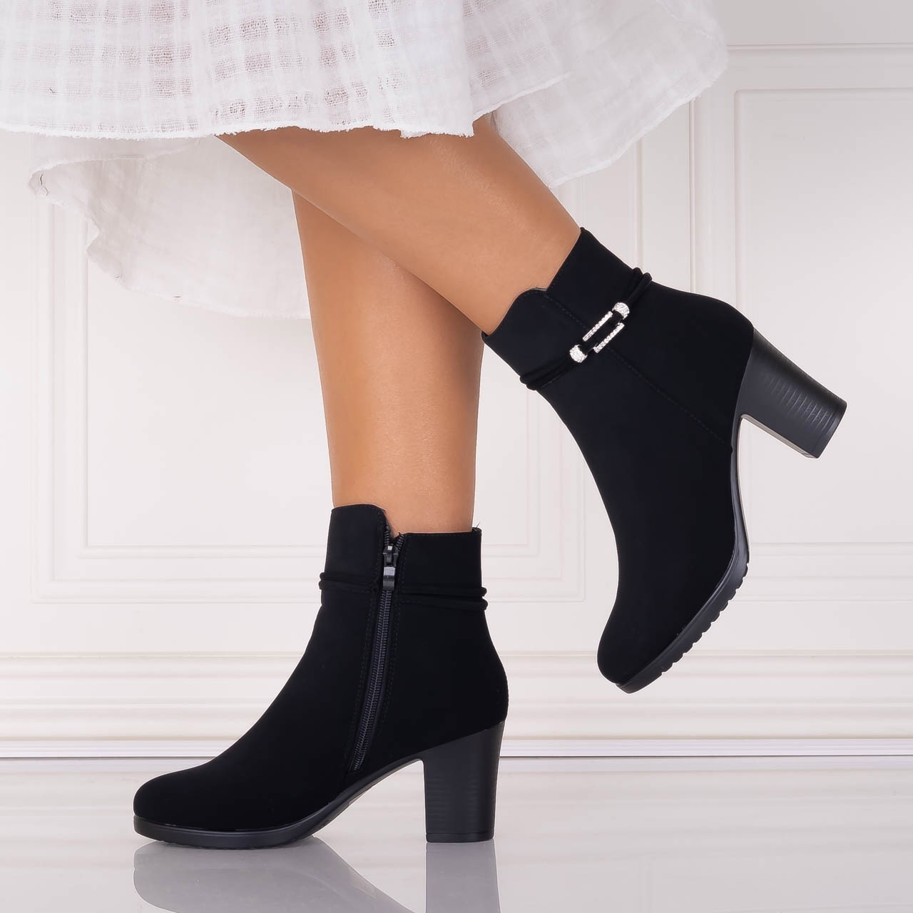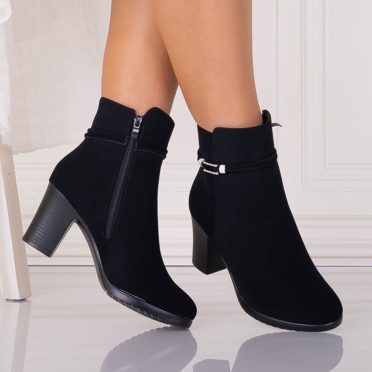 Botine Dama cu toc Negre din Piele Ecologica Aidala