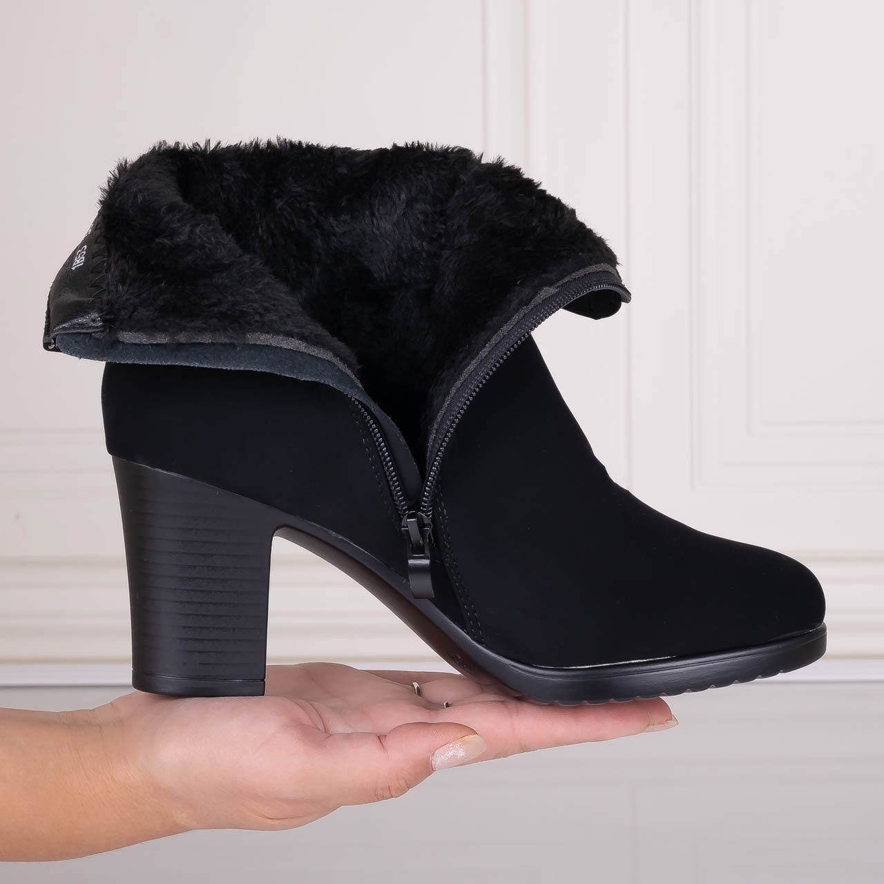 Botine Dama Imblanite Negre din Piele Ecologica Intoarsa Lovara