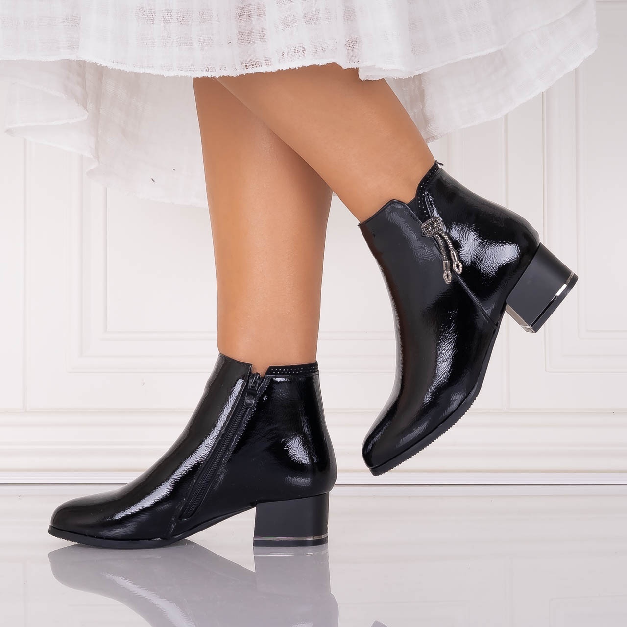 Botine Dama cu toc Negre din Piele Ecologica Aidala