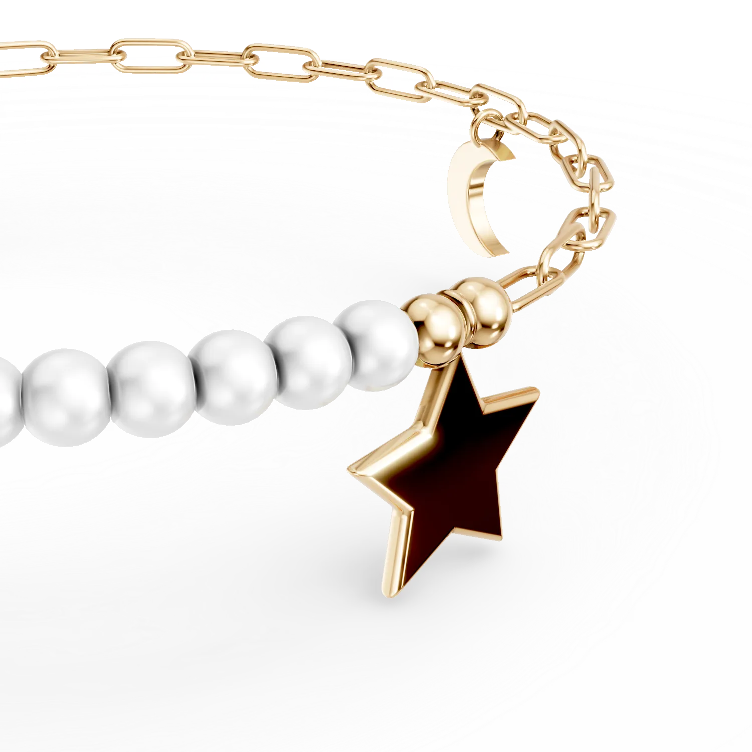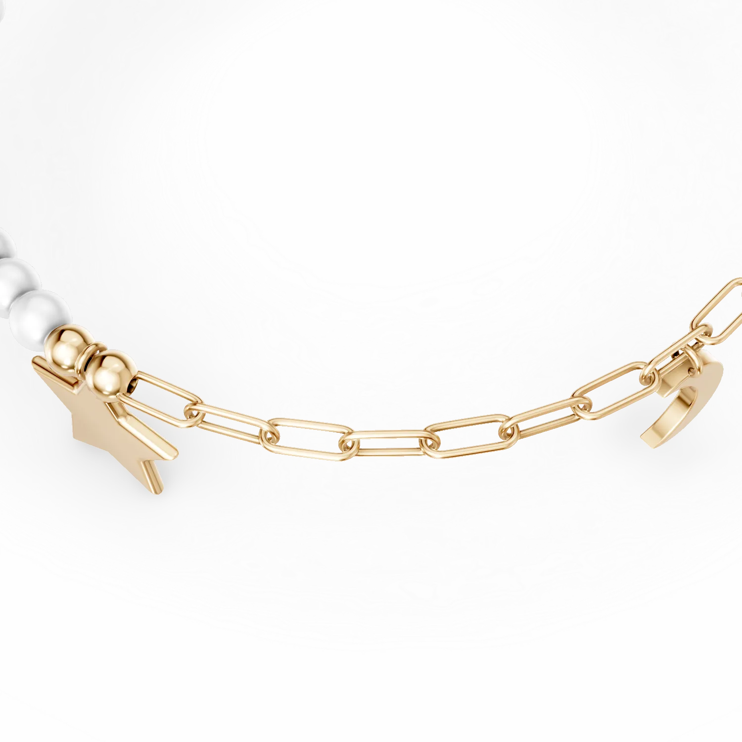 Aceasta bratara cu pandantive din argint galben si perle sintetice este simbolul elegantei si al naturaletii. Cu un design minimalist si finisaje fine, o poti purta zilnic sau la evenimente. Personalizeaz-o cu alte accesorii DAAR pentru un look cu adevarat unic.