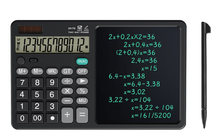 Acest calculator stiintific este proiectat cu un ecran LCD flexibil, prietenos cu ochii. Cu film LCD monocrom de scriere, non-reflectorizant, simuleaza senzatia reala de scriere, ecran de tabla de scris de mana de dimensiuni mari, mai bun pentru scriere si inregistrare. Corpul calculatorului stiintific este fabricat din ABS de inalta calitate pentru a imbunatati textura generala si prin 1.2 Test de cadere M, nu este usor sa fie deteriorat si durabil. Afisaj LCD cu unghi mare de vizualizare, calcul mai usor si mai rapid, suporta afisaj de 12 cifre. Tableta de scris cu ecran mare de 7 inchi, cu film LCD pentru scris de mana, face ecranul neted, fara frecare la scriere. Echipat cu panou solar de incarcare, in baterie este moarta, dar exista o sursa de lumina a mediului care poate fi inca folosita in mod normal. Calculatorul stiintific este echipat cu un stylus ascuns pe partea din stanga, care nu este usor de pierdut si inregistrat in orice moment. Va permite sa scrieti sau sa desenati linii luminoase si clare. Exista un dispozitiv de blocare a diapozitivelor anti-stergere sub afisaj care previne stergerea accidentala a notelor si blocheaza ecranul. Dispune de un ecran LCD albastru mat pentru a va proteja ochii. De asemenea, il puteti folosi ca bloc de note pe birou atunci cand nu utilizati calculatorul. Poate fi scris repetat, reduce consumul de hartie, ecologic, fara praf si cerneala, apasati butonul de stergere pentru a sterge notele LCD si pentru a va proteja confidentialitatea. Calculatorul stiintific este la fel de mic ca un telefon mobil, compact si usor de transportat. Acest calculator stiintific poate fi purtat in buzunar, poseta, geanta, birou, birou. Potrivit pentru afaceri de munca, calcule de inginerie, calcule contabile, calcule de fizica pentru studenti, uz casnic si asa mai departe.