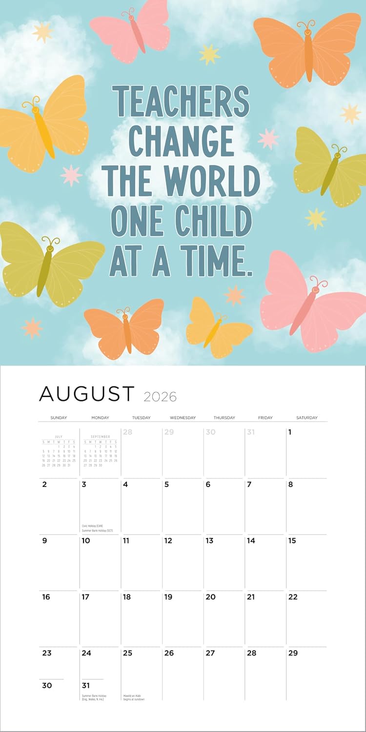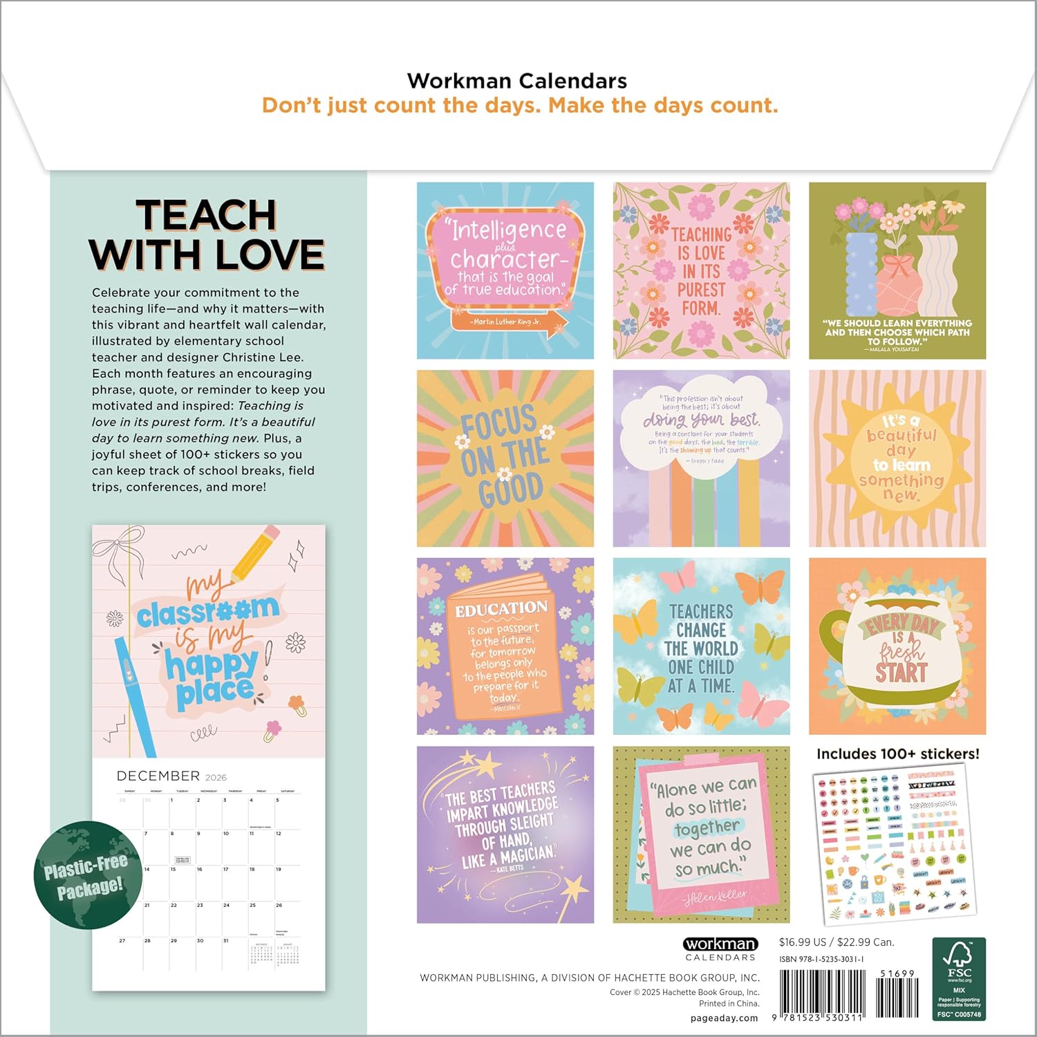 Calendar 2026 - Teaching Is a Work of HeartMOTIVATION AND INSPIRATION: Each month features a phrase, quote, or reminder to keep educators inspired throughout the month.FUN AND FUNCTIONAL: Illustrated with charming hand-lettering by elementary school teacher and designer Christine Lee. Plus colorful stickers for tracking days off, class trips, conferences, and more!PERFECT TEACHER GIFT: Let the teacher in your life know that theyre appreciated and their work matters - a perfect gift from a student or a friend.NOW PLASTIC-FREE!: Workman wall calendars are completely plastic-free! Now printed with an extended paper flap closed with a fully recyclable seal-no more shrink-wrap!
