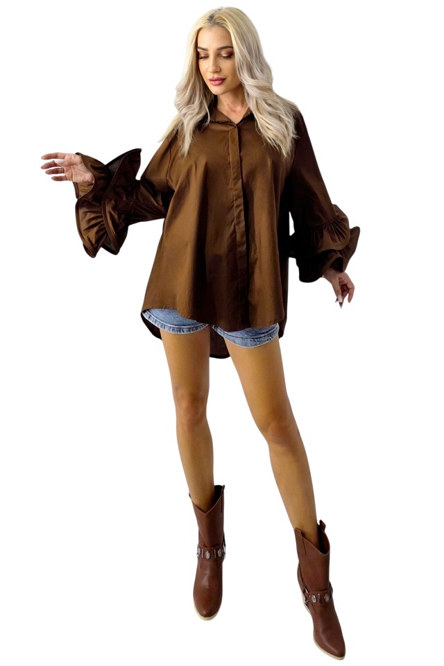 Cămașa de ocazie din bumbac Sugar LoLLy este o piesă statement care îmbină delicatețea cu nonconformismul, fiind ideală pentru cei care doresc să își exprime stilul personal într-un mod unic și îndrăzneț. Cu un croi supradimensionat și asimetric, această cămașă captează atenția prin silueta sa fluidă și modernă, oferind un confort sporit datorită designului lejer. Manșetele sunt împodobite cu volane ample, oversize, adăugând un aer romantic și sofisticat, care contrastează plăcut cu liniile contemporane ale piesei. Culoarea cămășii și textura materialului completează look-ul, oferind un echilibru perfect între eleganță și rafinament. Cămașa Sugar LoLLy devine astfel o piesă esențială în garderoba oricărei femei care apreciază detaliile fine și un stil vestimentar bine conturat. Camasa eleganta Sugar LoLLy - Eleganță fără compromis, putere fără limite! Caracteristici camasa : - lungime lunga, cu tipar asimetric supradimensionat - inchidere ascunsa cu nasturi - guler inalt cu revere scurte ascutite - croiala cu maneca lunga si terminatie cu volane duble oversize - model prezent in mai multe variante cromatice - compozitie material cu grad ridicat de confort: 100% bumbac - recomandarea noastra in raport calitate/pret Made in Italy! Dimensiuni lungime frontala; 65 cm; Dimensiuni lungime spate: 80 cm; Dimensiuni maneca: 50 cm; Circumferinta bust; 150 cm; Marimea universala este compatibila cu marimea S, marimea M sau marimea L Eticheta produsului conține informații esențiale referitoare la întreținerea și spălarea corectă a articolelor vestimentare. Imaginile Fashionforyou au caracter informativ, iar nuanta, tonul si intensitatea culorii pot varia in functie de monitor/ecran telefon.