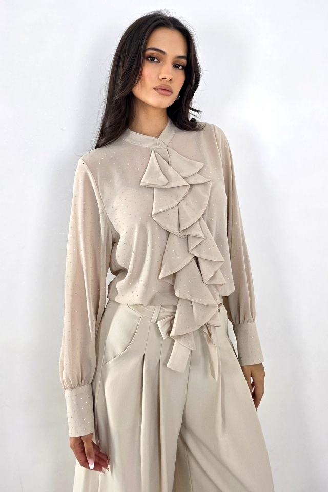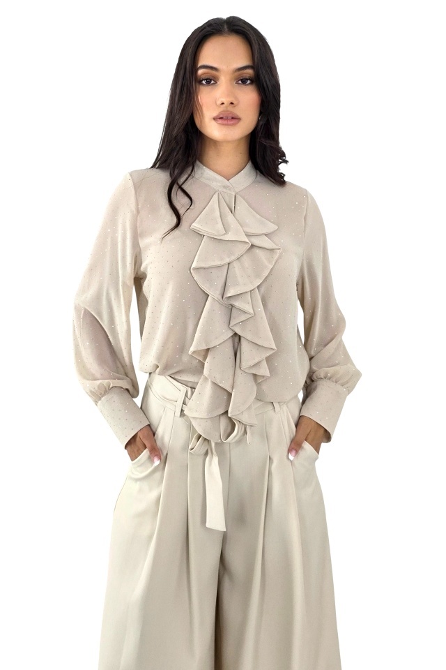 Camasa dama croi lung, Daliah cu volane si buline, Crem, Marime S/M