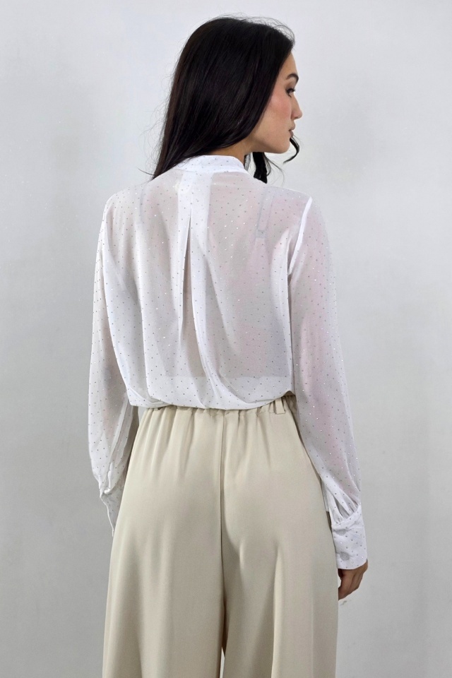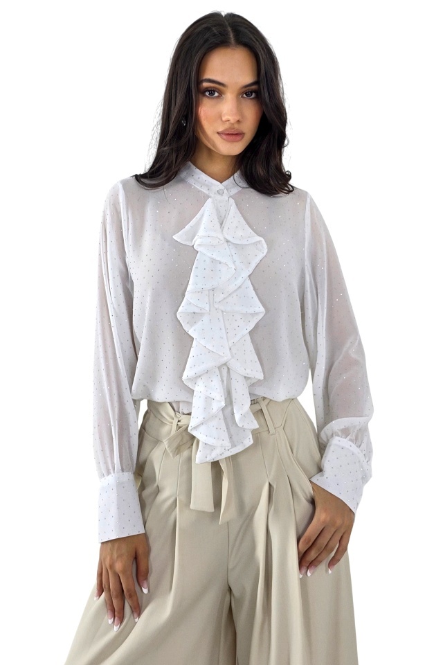 Daliah – cămașa care transformă casualul în artă! Cămașa lungă Daliah poartă cu sine moștenirea elegantă a jaboului, un detaliu vestimentar apărut în moda aristocratică a secolelor XVII–XVIII, purtat de nobilime ca simbol al rafinamentului și al prestigiului. Reinterpretat astăzi în cheia modernă a feminității, jaboul rămâne un element statement, menit să transforme o piesă vestimentară într-o apariție de neuitat. Gulerul tip tunică este completat de jaboul decorativ, bogat și fluid, care adaugă un aer romantic și sofisticat. Realizată dintr-o textură vaporoasă, lejeră și plăcută la purtare, Daliah se remarcă prin croiul lung și liniile fluide, puse în valoare de pensa discretă la spate ce creează un efect elegant și relaxat. Imprimeul cu buline adaugă un detaliu jucăuș și sofisticat în același timp, oferind un contrast modern între clasic și actual. Detaliul spectaculos al imprimeului este obținut prin cristale artizanale , care dau iluzia de buline și transformă piesa într-un adevărat obiect de artă vestimentară. Astfel, fiecare apariție capătă strălucire unică și subtilă, fără a pierde din delicatețea designului. Mâneca lungă cu manșetă lată oferă un efect bufant ușor, amplificând farmecul și caracterul sofisticat al cămășii. Cu mărime universală, Daliah devine alegerea ideală pentru femeia care dorește să îmbine povestea clasică a modei cu detaliile contemporane de lux. MADE IN ITALY! Daca optati pentru tinuta aleasa de manechinul nostru, va puteti inspira de AICI ! Compozitie material: 100% poliester; Marimea universala S/M compatibila cu masurile S sau M! Caracteristici camasa: - croi lung cu pensa la spate - inchidere cu nasturi - guler inalt, tunica si detaliu cu volane (jabou) - maneca lunga cu manseta lata - material cu textura vaporoasa si cristale artizanale - model prezent in colectie cromatica Eticheta produsului conține informații esențiale referitoare la întreținerea și spălarea corectă a articolelor vestimentare. Imaginile Fashionforyou au caracter informativ, iar nuanta, tonul si intensitatea culorii pot varia in functie de monitor/ecran telefon.
