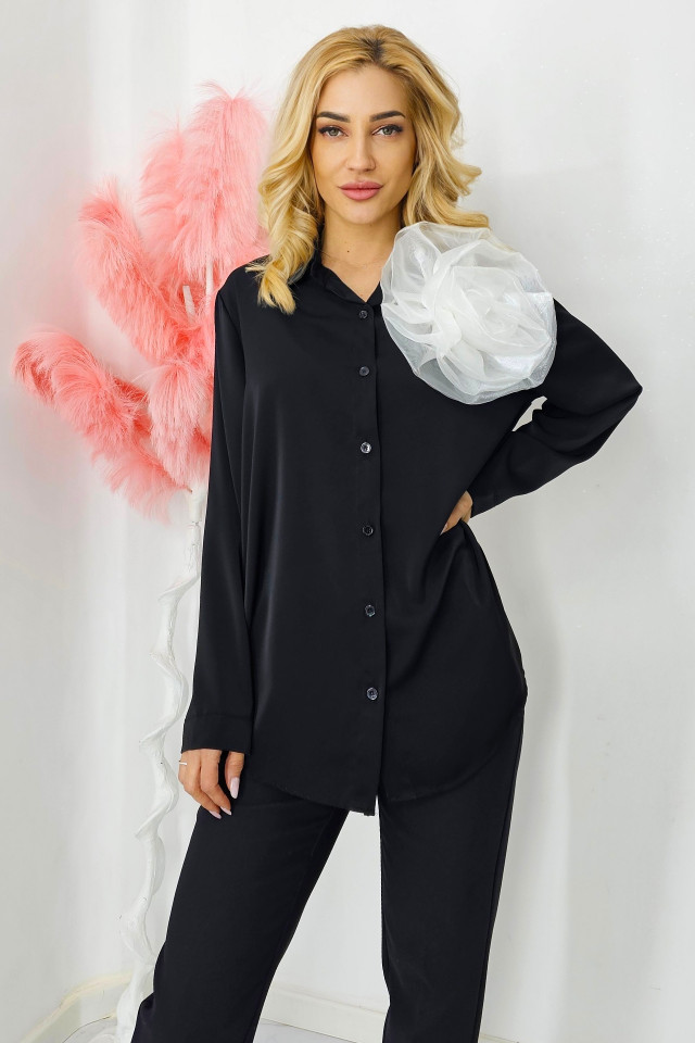 Camasa office Alizee, cu accesoriu floral din organza, Marime universala Fiecare petală, o poveste; fiecare purtare, o virtute! Caracteristici camasa : - lungime lunga cu tipar drept, asimetric si inchidere cu nasturi - guler cu revere scurte - croiala cu umerii buretati - maneca lunga cu manseta si nasture - accesoriu floral oversize din organza, detasabil - model prezent in mai multe variante cromatice - compozitie material: 100% polyester - marime universala compatibila cu marimile S sau M Imaginile Fashionforyou au caracter informativ, iar nuanta, tonul si intensitatea culorii pot varia in functie de monitor/ecran telefon.