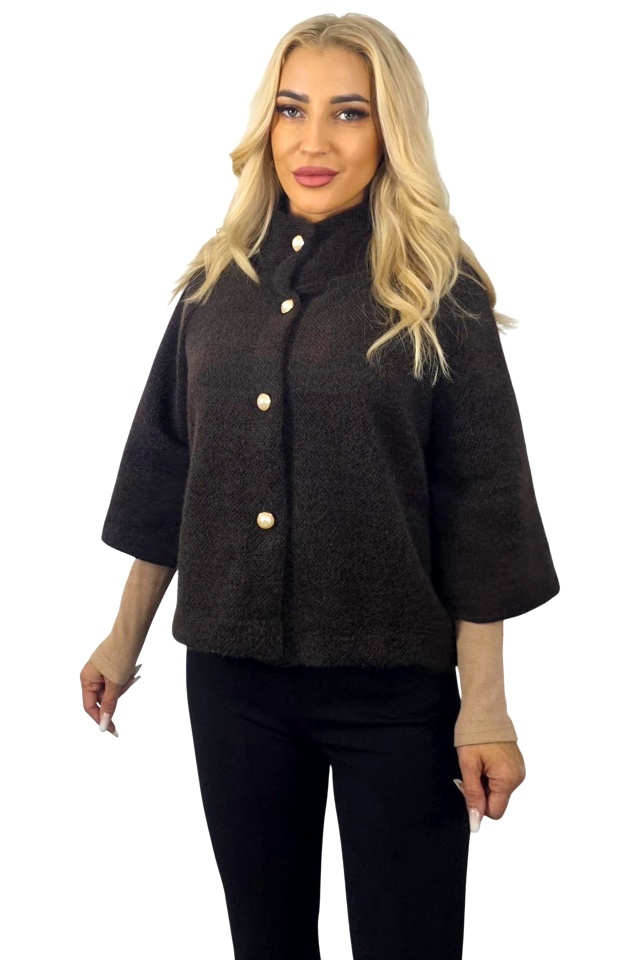 Capa cu maneca trei sferturi, VORRA si butoni perla, Maro, Marime S/M