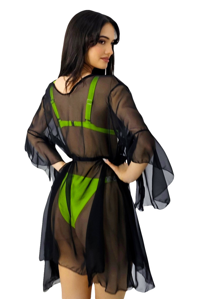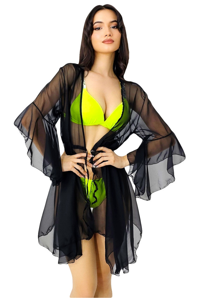 Cardigan scurt de plaja ZyZy, cu maneca evazata si snur in talie Cardiganul scurt de plajă ZyZy este alegerea perfectă pentru a completa ținutele tale de vară cu un aer rafinat și elegant. Cu un design modern și feminin, acest cardigan adaugă un plus de stil oricărei ținute de plajă sau de piscină. Aspectul transparent al materialului adaugă o notă de subtilitate și senzualitate, permițându-ți să arăți și să te simți confortabilă în timpul zilelor călduroase de vară. Manecile evazate adaugă un element de fluență și lejeritate, creând un aspect ușor și aerisit care se potrivește perfect cu atmosfera relaxată a zilelor de vară. Această croială elegantă îți oferă libertate de mișcare și confort, astfel încât să te poți bucura de plajă în voie. Snurul în talie completează look-ul, permițându-ți să-ți ajustezi cardiganul în funcție de preferințele tale și de silueta ta. Acest detaliu practic adaugă un plus de funcționalitate și stil, transformând cardiganul ZyZy într-o piesă versatilă și practică pentru zilele de vară. Fabricat dintr-un material ușor și respirabil, acest cardigan de plajă este alegerea ideală pentru a te proteja de razele soarelui în timp ce te bucuri de plăcerea de a fi la plajă. Elegant și practic, cardiganul scurt de plajă ZyZy este un must-have pentru orice femeie care apreciază stilul și confortul în timpul vacanțelor de vară. Compozitie material: 100% poliester Modelul nostru a asortat la cardiganul ZyZy, costumul de baie Le Secret ! Recomandari intretinere: Spalare manuala la 30%, Nu se foloseste inalbitor sau centrifugare. Nu se calca, Nu se curata chimic. Modelul are 172 cm inaltime, 55 kg, circumferinta bust 91 cm, talie 58, sold 84, cupa sutien D. Si poarta marimea M Eticheta produsului conține informații esențiale referitoare la întreținerea și spălarea corectă a articolelor vestimentare. Imaginile Fashionforyou au caracter informativ, iar nuanta, tonul si intensitatea culorii pot varia in functie de monitor/ecran telefon.