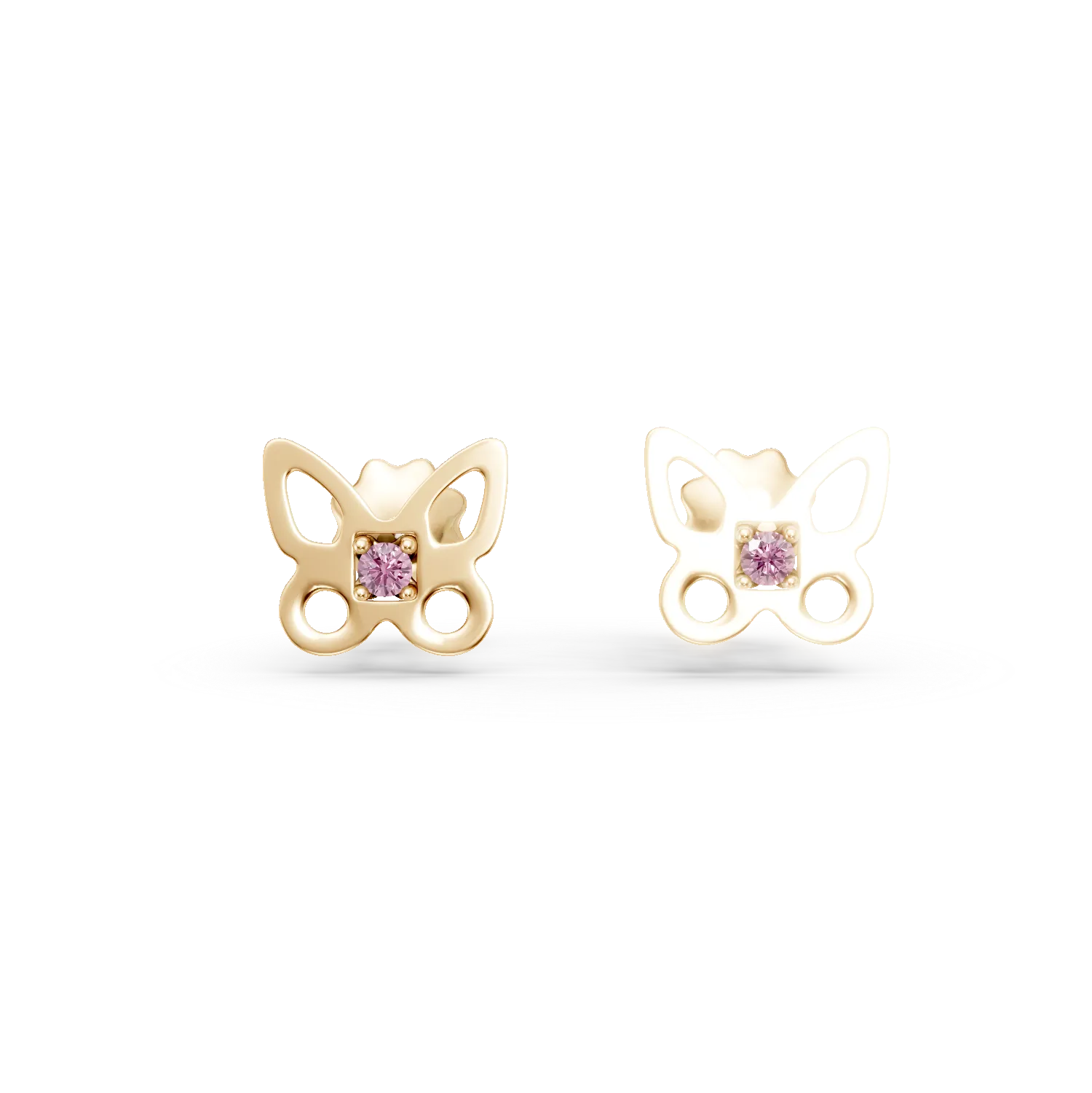 Cerceii fluturi din aur galben cu zirconii roz sunt creati pentru a aduce un strop de culoare si bucurie in tinutele celor mici. Designul delicat, cu forme jucause, pastreaza un aer elegant datorita tonului cald al aurului si stralucirii fine a zirconiei. Sunt usor de purtat zi de zi, confortabili si potriviti pentru orice moment. O bijuterie plina de farmec, gandita sa insoteasca fiecare zambet. Descopera universul DAAR!