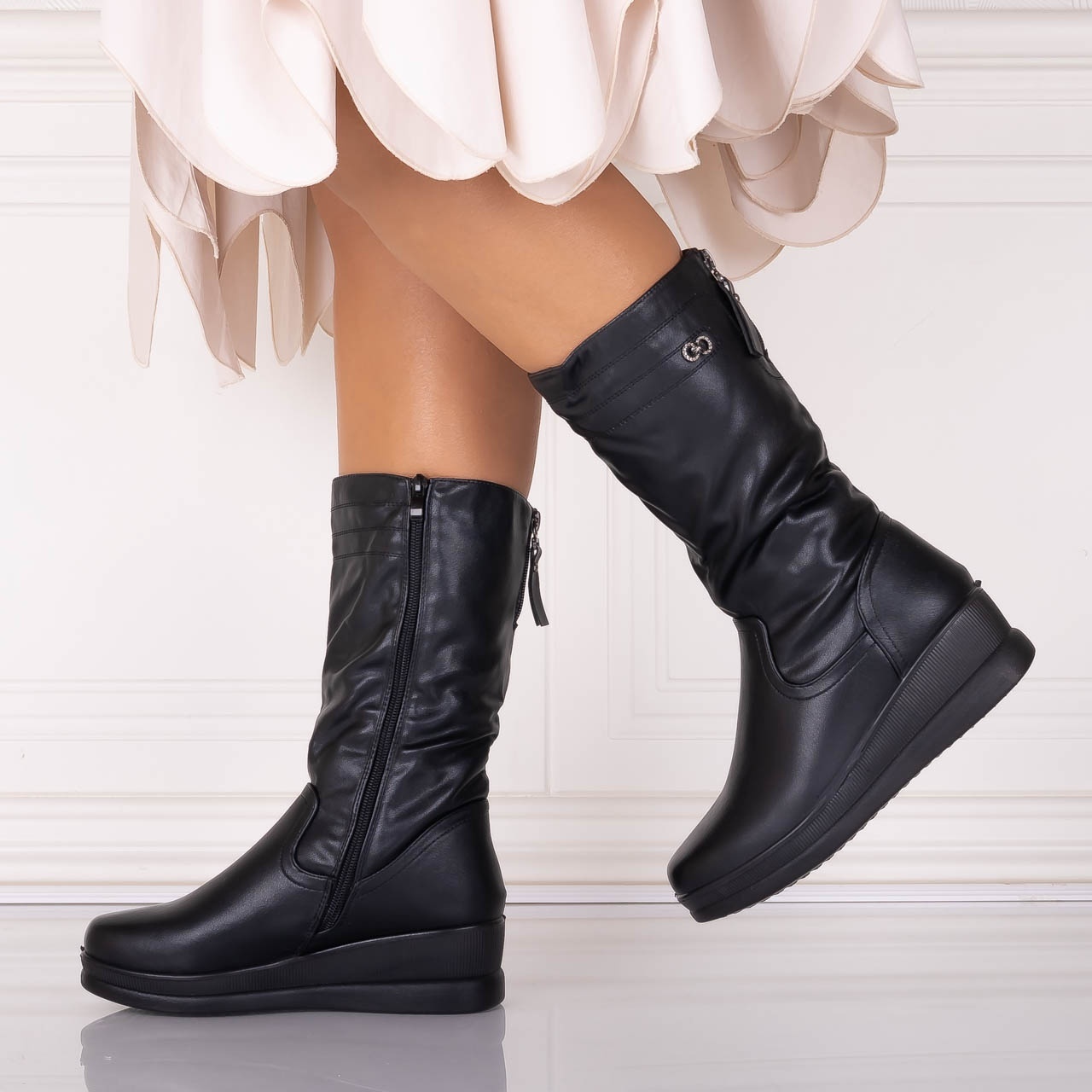 Ghete dama Imblanite Negre din Piele Ecologica Lacuita Garosi