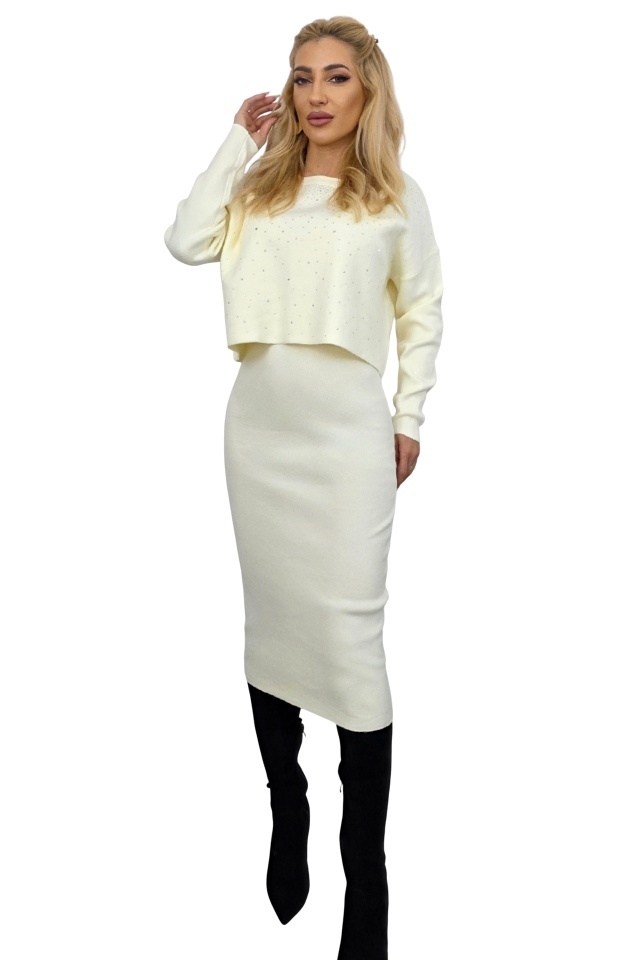 Echilibru perfect între lejer și rafinat. Două piese, o eleganță continuă. Imbină lejeritatea unei ținute casual cu accentele elegante ale detaliilor artizanale. Realizat din tricot moale, elastic și plăcut la atingere, setul este format dintr-o rochie midi bodycon, cu bretele medii care evidențiază linia umerilor, și o bluză scurtă oversize, cu mâneci lungi, pentru un efect vizual echilibrat și modern. Partea frontală a bluzei este accesorizată integral cu cristale artizanale, dispuse atent pentru a crea o strălucire subtilă, dar plină de personalitate. Textura fină a tricotului se adaptează ușor la formele corpului, oferind libertate de mișcare, confort și o ținută impecabilă în orice moment al zilei. Este alegerea ideală pentru femeia care dorește un look relaxat, dar plin de rafinament. Poate fi purtat atât în contexte casual, cât și la evenimente de seară, păstrând mereu o linie elegantă și o prezență sigură. Caracteristici compleu: - Material: tricot elastic, moale, cu textură fină - Format: rochie midi bodycon fara inchidere + bluză oversize cu mânecă lungă - Accesorii: cristale artizanale aplicate frontal - Croială bodycon: echilibru între lejeritate și feminitate - Bretele medii , pentru o linie elegantă a umerilor - Confort termic moderat , ideal pentru tranziția de sezoane - model prezent in colectie cromatica Compozitie material: 20% poliester, 30% vascoza, 40% poliamida, 10% elastan; Marimea universala S/M compatibila cu masurile S sau M! Eticheta produsului conține informații esențiale referitoare la întreținerea și spălarea corectă a articolelor vestimentare. Imaginile Fashionforyou au caracter informativ, iar nuanta, tonul si intensitatea culorii pot varia in functie de monitor/ecran telefon.
