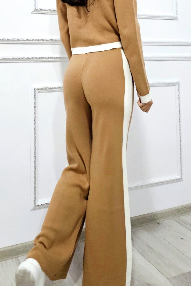 Compleul de damă Thalos îmbină perfect confortul și stilul într-o ținută versatilă, ideală pentru diverse ocazii. Cardiganul din tricot se remarcă prin croiul său lejer , perfect pentru o portabilitate ușoară și un look relaxat. Imprimeul cu dungi în două nuanțe subtil compatibile adaugă o notă de rafinament, fiind ideal pentru a pune în evidență eleganța discretă a ținutei. Pantalonii evazați completează perfect ansamblul, având un design care accentuează linia siluetei și adaugă un efect de alungire. Nuanța de maro inspiră naturalețe și căldură, fiind o alegere ideală pentru orice sezon, în special pentru toamnă. Potrivit atât pentru ieșiri relaxante, cât și pentru evenimente casual, acest compleu este soluția perfectă pentru un look elegant și confortabil. Realizat dintr-un amestec premium ce conține 70% lână, compleul Thalos îți oferă confort termic și o textură moale, perfectă pentru sezonul rece. Fibrele naturale contribuie la menținerea unei temperaturi optime și asigură durabilitate îndelungată. Caracteristici trening: - bluza cu croiala scurta, inchidere cu butoni aurii - maneci cu mansete aparente si buzunare decorative - pantaloni lejeri, evazati cu betelie elastica in talie - material cu textura foarte flexibila si comoda - model prezent in mai multe variante cromatice Compozitie material: 70% lana; 30% poliester; Îngrijire: Spălați manual sau la program pentru lână, la o temperatură maximă de 30°C. Evitați centrifugarea excesivă și uscați piesele pe o suprafață plană, ferite de lumina directă a soarelui. Nu folosiți înălbitor sau alte substanțe agresive. Călcați pe dos, la temperatură scăzută, dacă este necesar. Marimea universala la acest model se preteaza pentru dimensiuni S sau M cu componenta foarte flexibila! Eticheta produsului contine informatii esentiale referitoare la intretinerea si spalarea corecta a articolelor vestimentare. Imaginile Fashionforyou au caracter informativ, iar nuanta, tonul si intensitatea culorii pot varia in functie de monitor/ecran telefon.