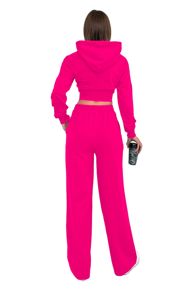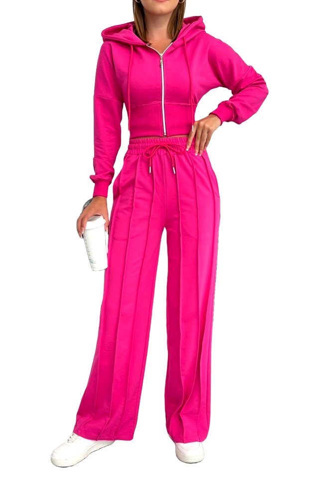 Compleu casual WalKING Time, hanorac si pantaloni cu dungi in relief, Fucsia